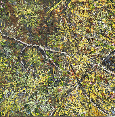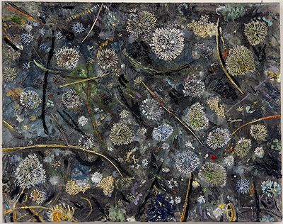 Moss and Lichens No:3, acrylic, oil and embroidery on linen,