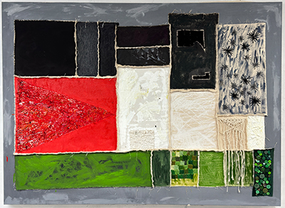 Currarong Stoppages, acrylic, oil and embroidery on canvas,