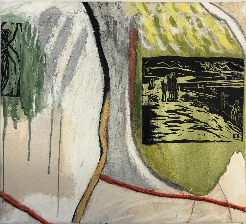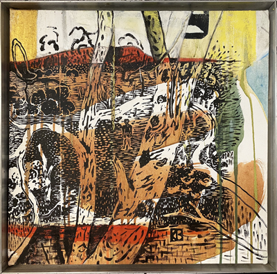 Mangrove Poet, linocuts, oil on canvas,