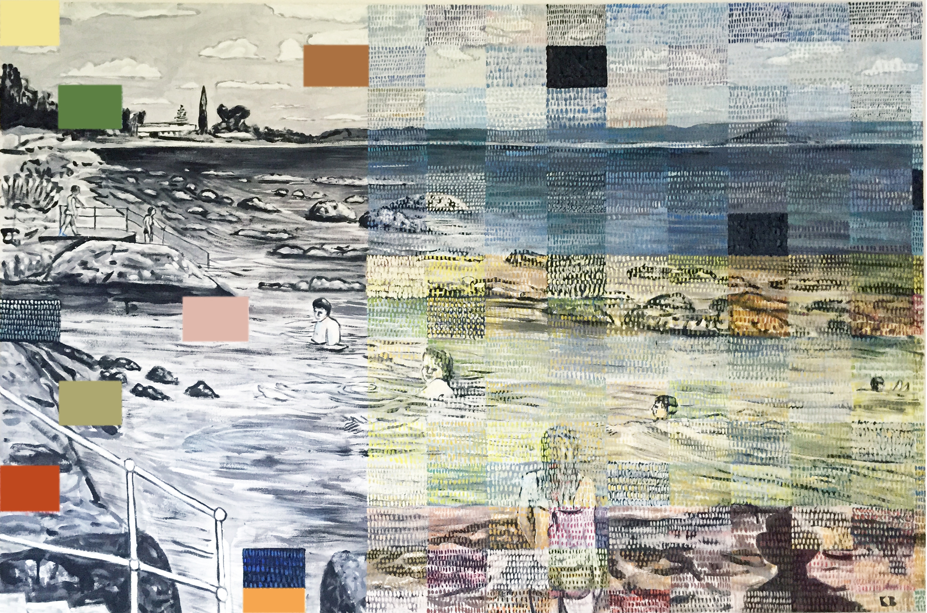 Bosom Beach Lagoon No:6, graphite and oil on canvas,