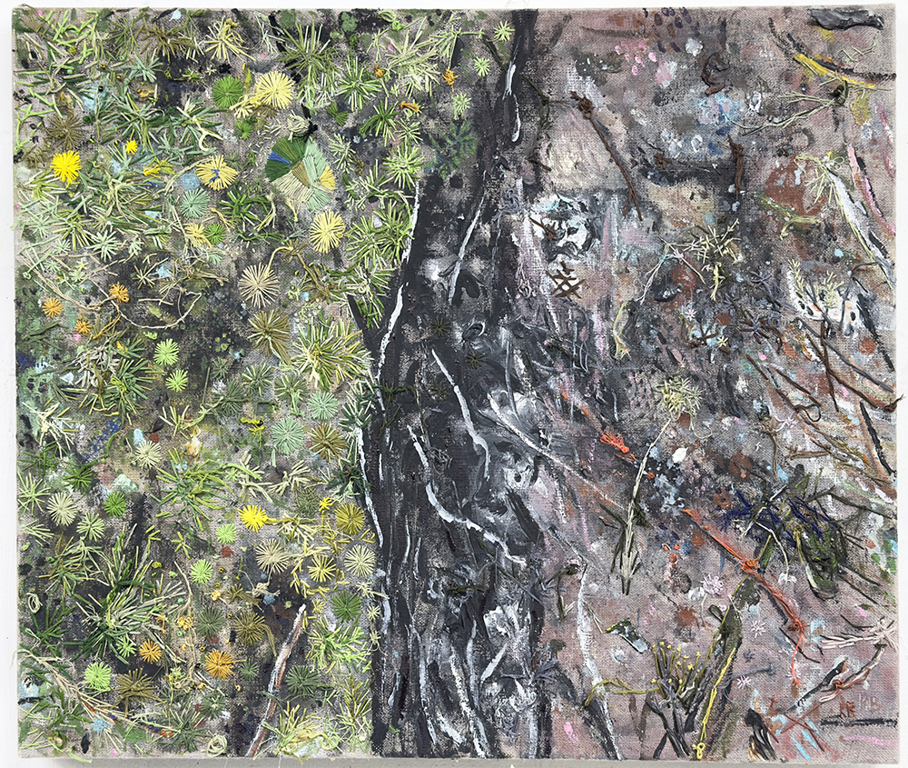 Indeterminate View No:2, 30 x 40cm, oil embroidery graphite on canvas, 2024 $900