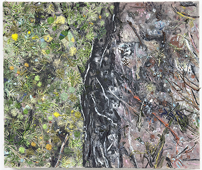 Forest Road Today,107 x 144cm, graphite, acrylic, oil, embroidery on canvas, 2023-4 $2900
