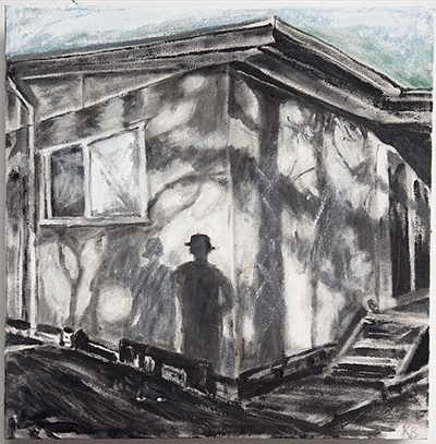 Martin and Sharon's House, 92 x102cm, graphite oil acrylic on canvas, 2025 $1500 |